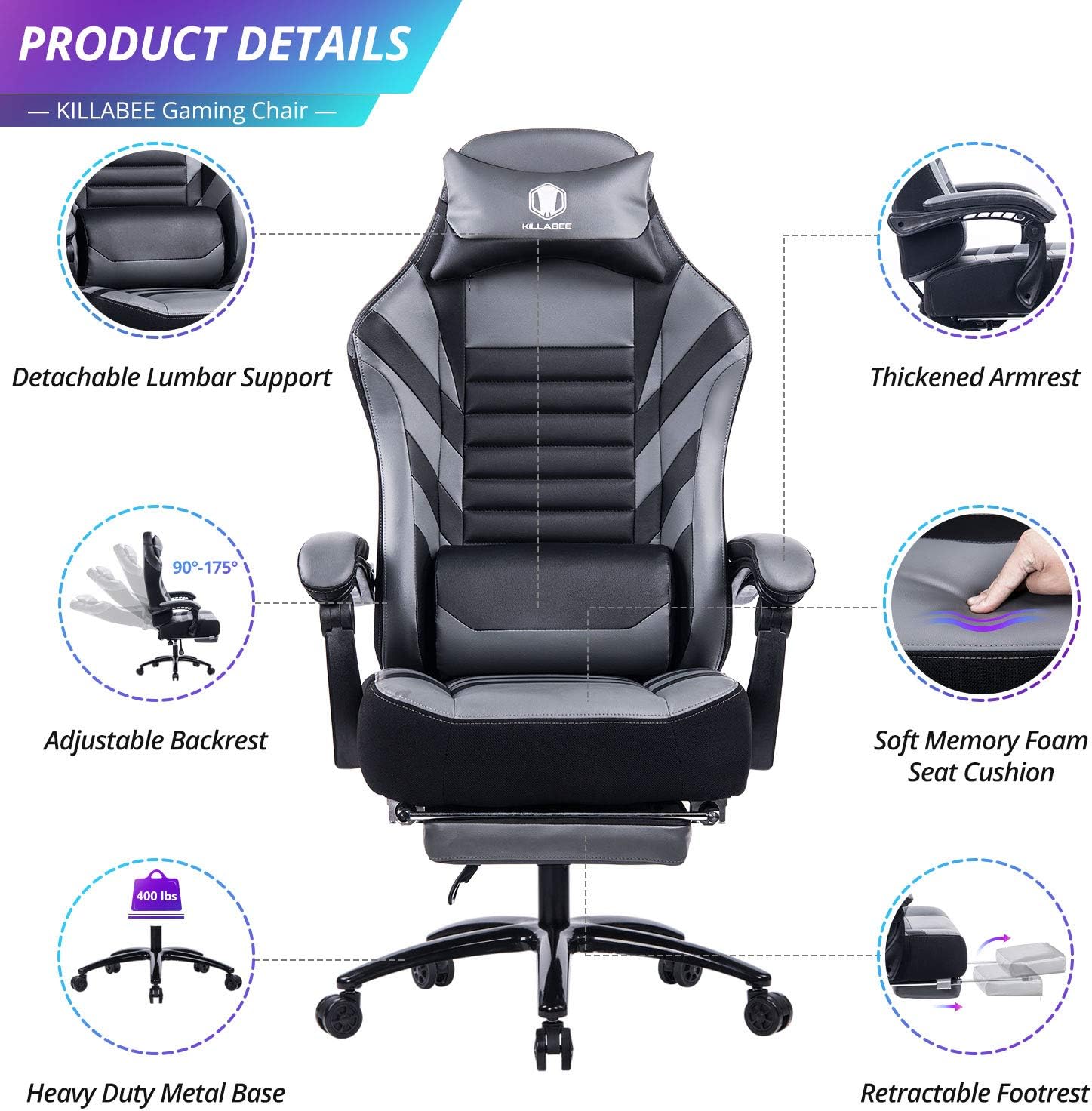 Killabee Big Tall 400lb Gaming Chair Retractable Footrest Metal Base Reclining Racing Executive Computer Desk Office Chair Adjustable Back Angle And Ergonomic High Back Chairs Stools Home Urbytus Com